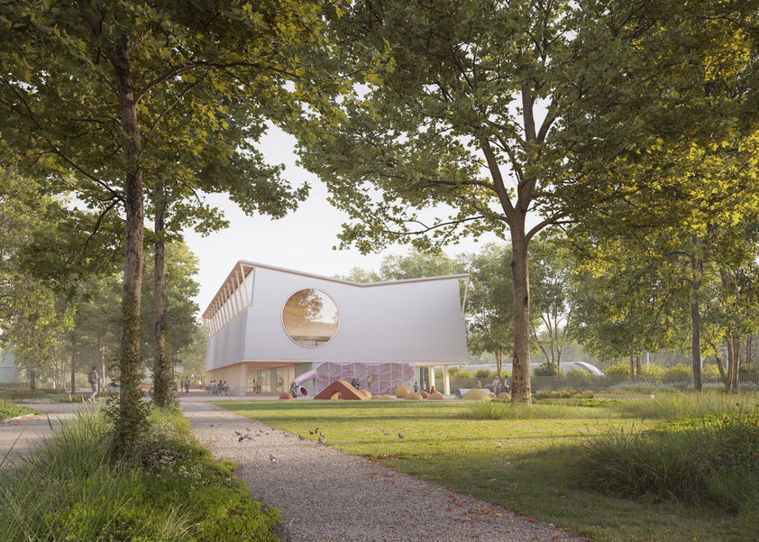 Programme : Salle multi-fonctionnelle I Salle de réunion I Cuisine collective I Espace d'accueil et bar I Club-house I Vestiaires I Parvis public I Aménagements paysagers
